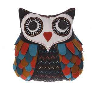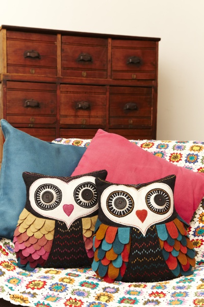 Przepiękna, zapinana na rzep filcowa powłoczka Sowy Penelope wykonana jest z niezwykłą dbałością o detale. Piękne kolory, oczy z dużych brązowych guzików, warstwowe skrzydełka, wykończenie z kolorowych nici.