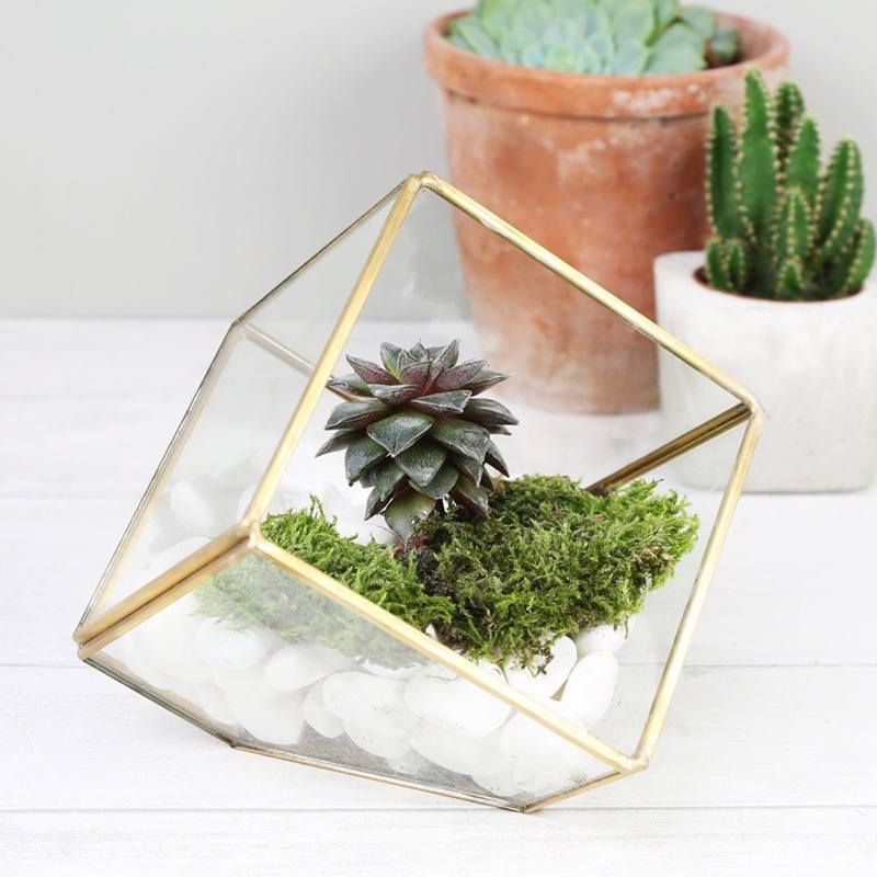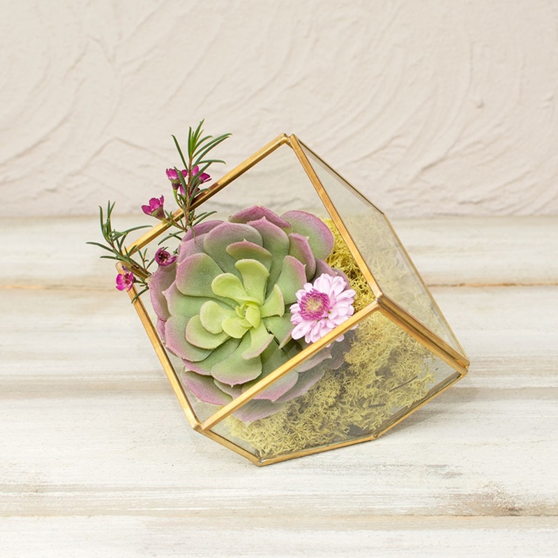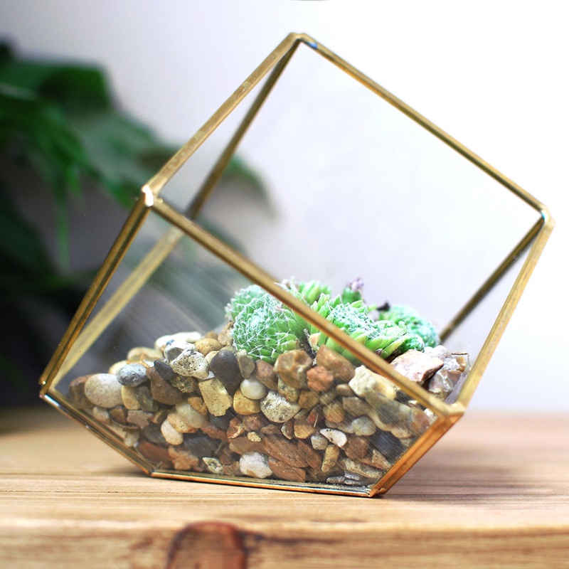 Funkcjonalne i na czasie – terrarium ze szkła o złotych melicznych krawędziach i nowoczesnym geometrycznym kształcie jest idealne do stworzenia stylowego ekosystemu. Kostka może być stosowana zarówno do kompozycji kwiatowych, jak i do różnych dekoracji wnętrz – możesz umieścić w nim zielony mech, piasek i muszle, świece, biżuterie… jedynym ograniczeniem jest Twoja wyobraźnia.